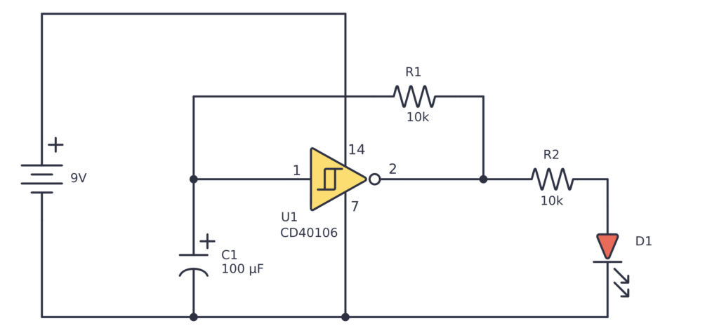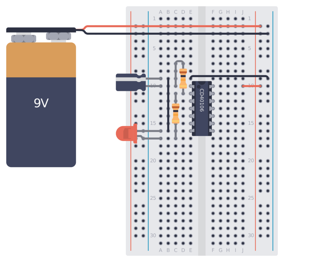 This is a simple LED blinker circuit. Once connected, the LED will flash on and off.
