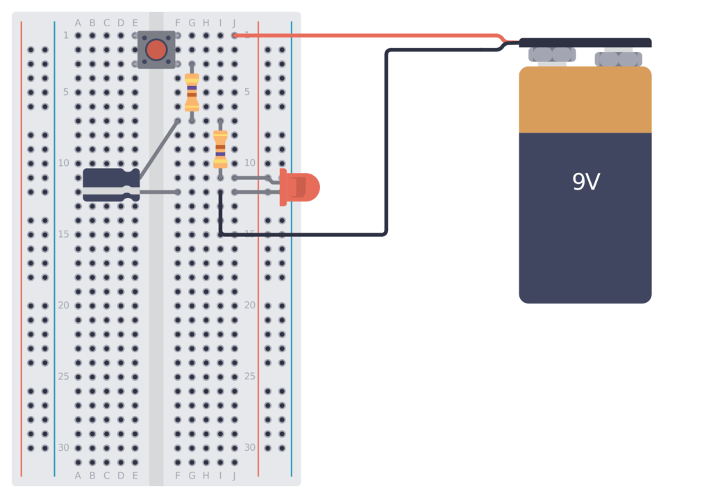 When this circuit is connected correctly, the light should fade in when you push the button and fade out when you release the button.