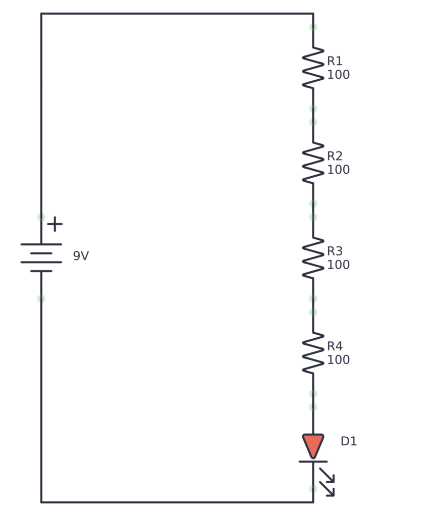 The Circuit Parts List Reference Value D1 R1 100 R2 100 R3 100 R4 100 9V The Layout Created: May 29, 2024 | Updated: Oct 21, 2025 |